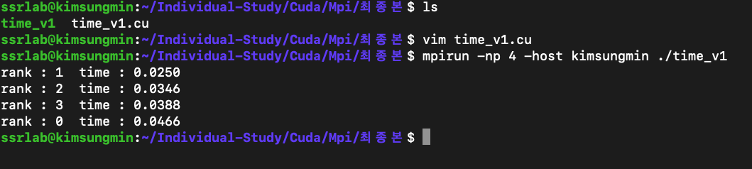| $ nvcc time_v1.cu -o time_v1 -lmpi |